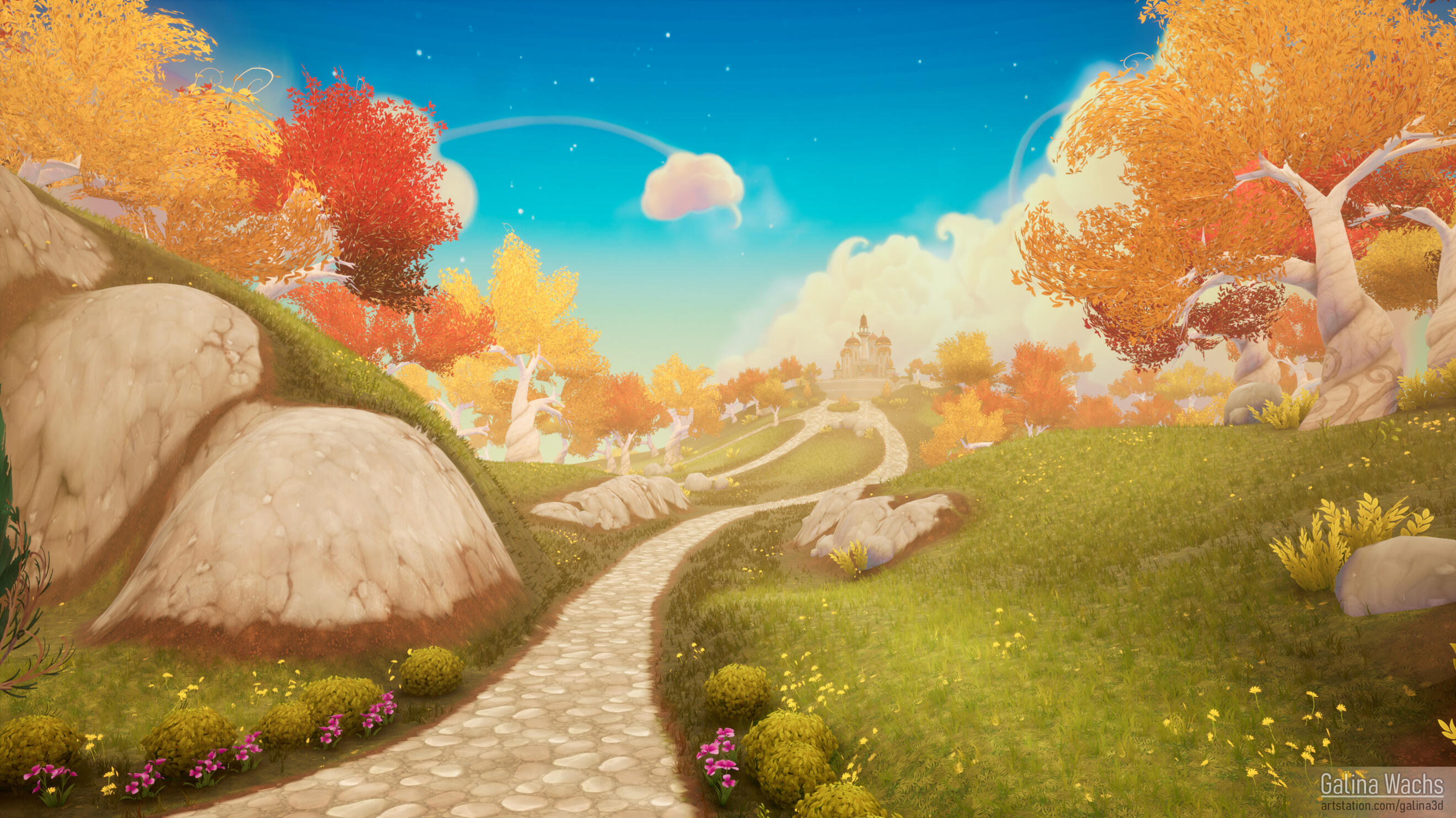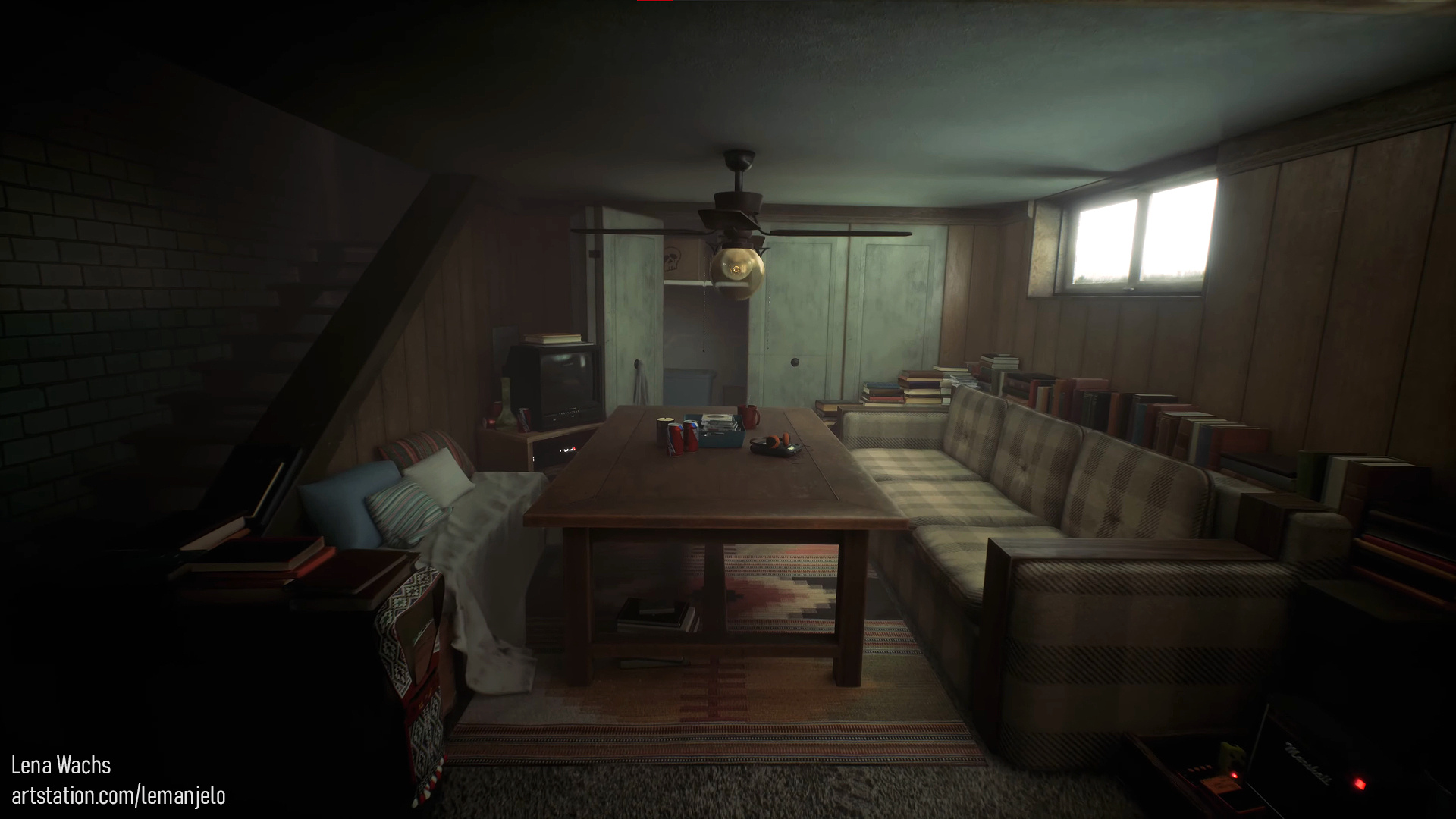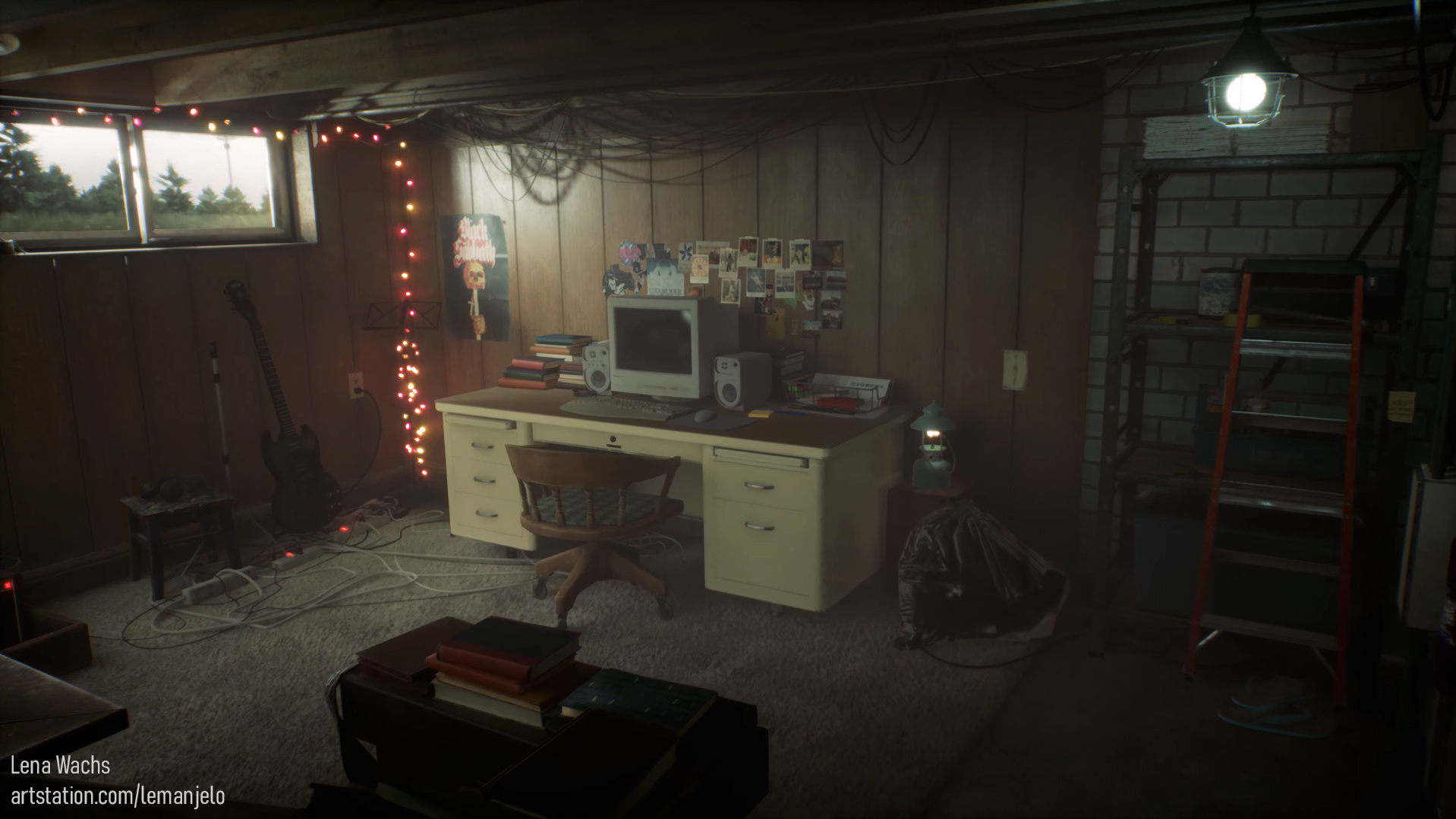 Hi! My name is Galina, but I go by Lena. I'm an environment artist who's passionate about creating atmospheric, story-driven spaces. Outside of work, I love playing piano, climbing, playing tabletop games, and indulging my dog Mila who runs the show.