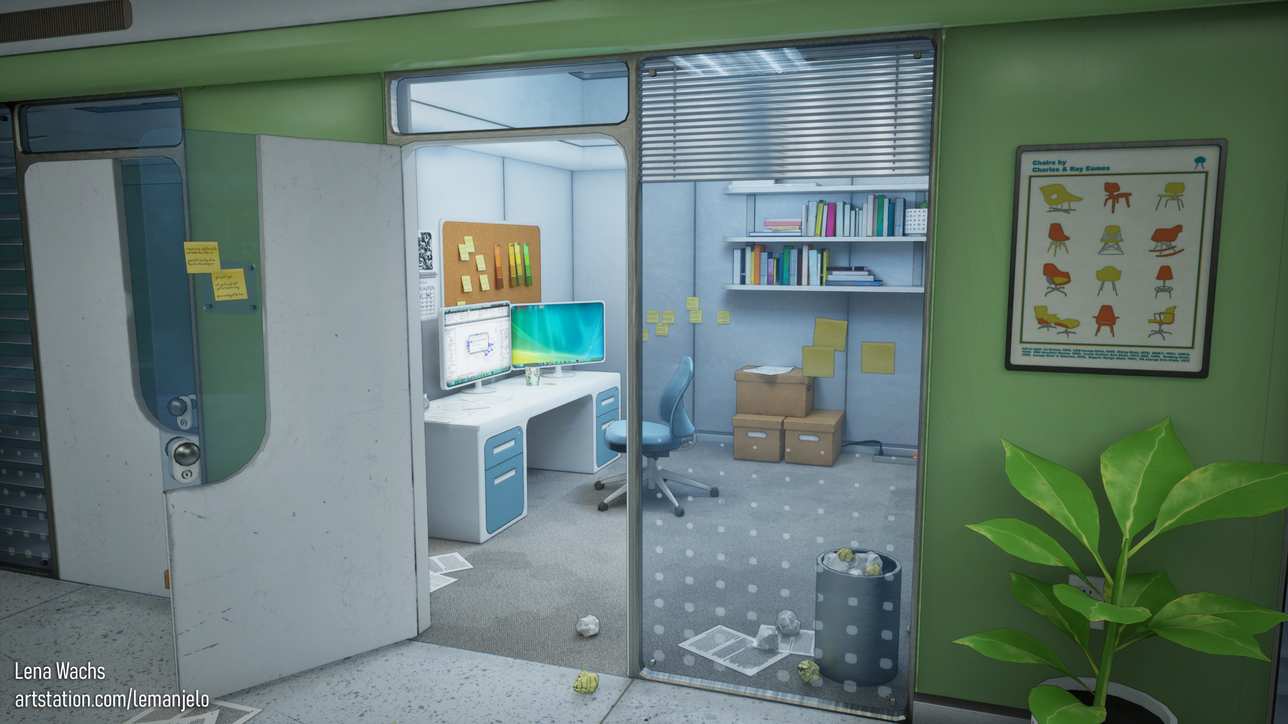 Hi! My name is Galina, but I go by Lena. I'm an environment artist who's passionate about creating atmospheric, story-driven spaces. Outside of work, I love playing piano, climbing, playing tabletop games, and indulging my dog Mila who runs the show.